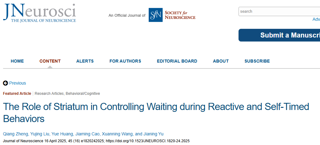 Dr. Jianing Yu: The Role of Striatum in Controlling Waiting during Reactive and Self-Timed Behaviors