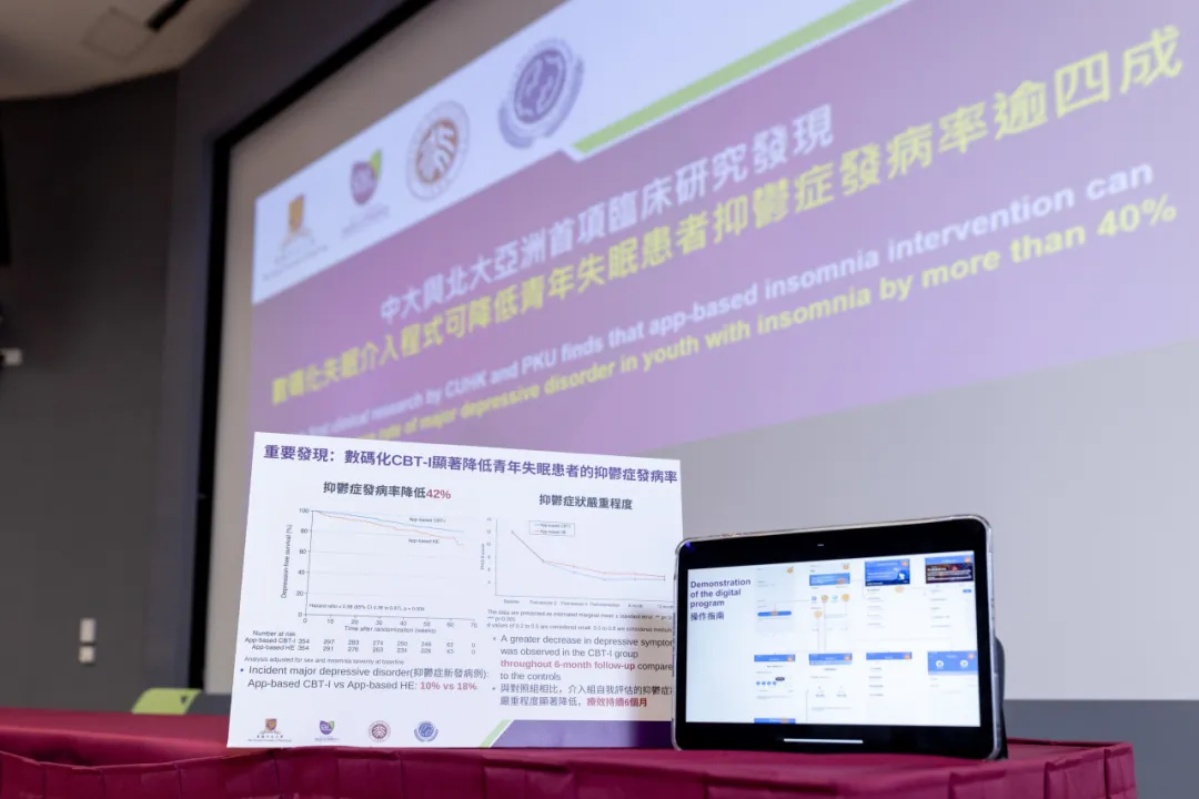 抑郁症是全球12亿青年人口中最常见的精神疾病之一,医学界已发现失眠与抑郁密切的因果关系,且为抑郁症发病的独立危险因素。北京大学第六医院与香港中文大学医学院联合开展了亚洲首项数字化失眠认知行为治疗(简称数字化CBT-I)的临床研究,提示此程序可降低青年失眠患者抑郁症发病率。此项研究已刊载于国际顶尖医学期刊《PLoS Medicine》。